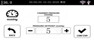 使用“+”或“-”调整到所需的压力,然后按=>“确认”;